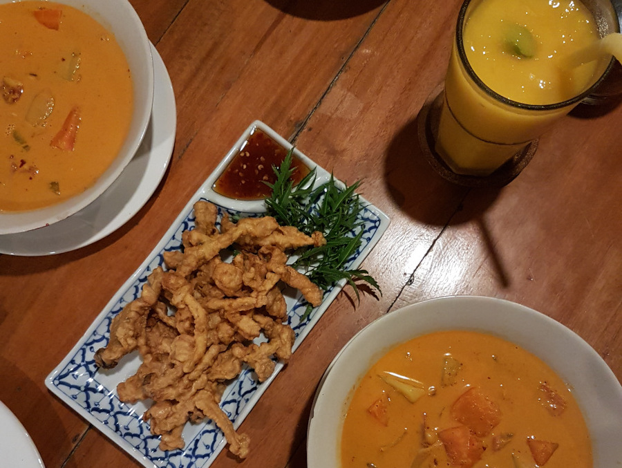 Das Nanas ist weder rein vegetarisch noch vegan ausgerichtet, bietet aber viele leckere Gerichte ganz ohne Fleisch und tierische Produkte. Es zählt zu den beliebtesten Food-Spots der kleinen Stadt und ist definitiv einen Besuch wert. Das Curry gibts hier für rund 2,50 Euro und auch die anderen Gerichte bewegen sich in diesem Preisrahmen. Sehr zu empfehlen ist außerdem das Fried Morning Glory – gebratener Wasserspinat nach thai Art. Sieht einfach aus, ist aber extrem lecker und liegt preislich bei umgerechnet gerade einmal 1,60 Euro.